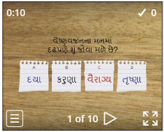 અહી, ધો.10 ગુજરાતીમા પ્રકરણ-૧ વૈષ્ણવજનમાંંથી ગેમ શો સ્વરૂપે ક્વિઝ  મૂકવામાં આવી છે.ગેમમા તમારૂ નામ લખી સ્ટાર્ટ કરી શકાશે.જમણી બાજુ નીચે ફુલસ્ક્રીનના સિમ્બોલ પર ક્લિક કરતા ફુલસ્ક્રીન કરી શકાશેગેમના અંતે તમારા જવાબો ચકાસી શકાશે.સમગ્ર ગુજરાતમા તમારો રેંક જાણી શકાશે.આ ગેમ શો – ક્વિઝને તમારા મિત્રોને શેર કરો.
